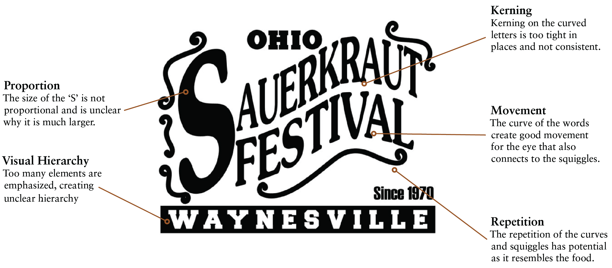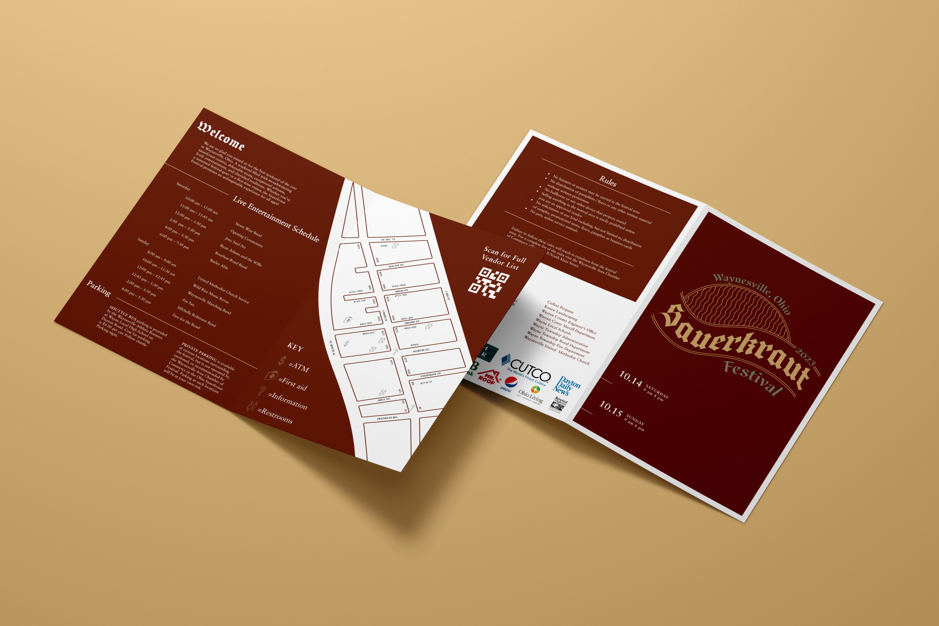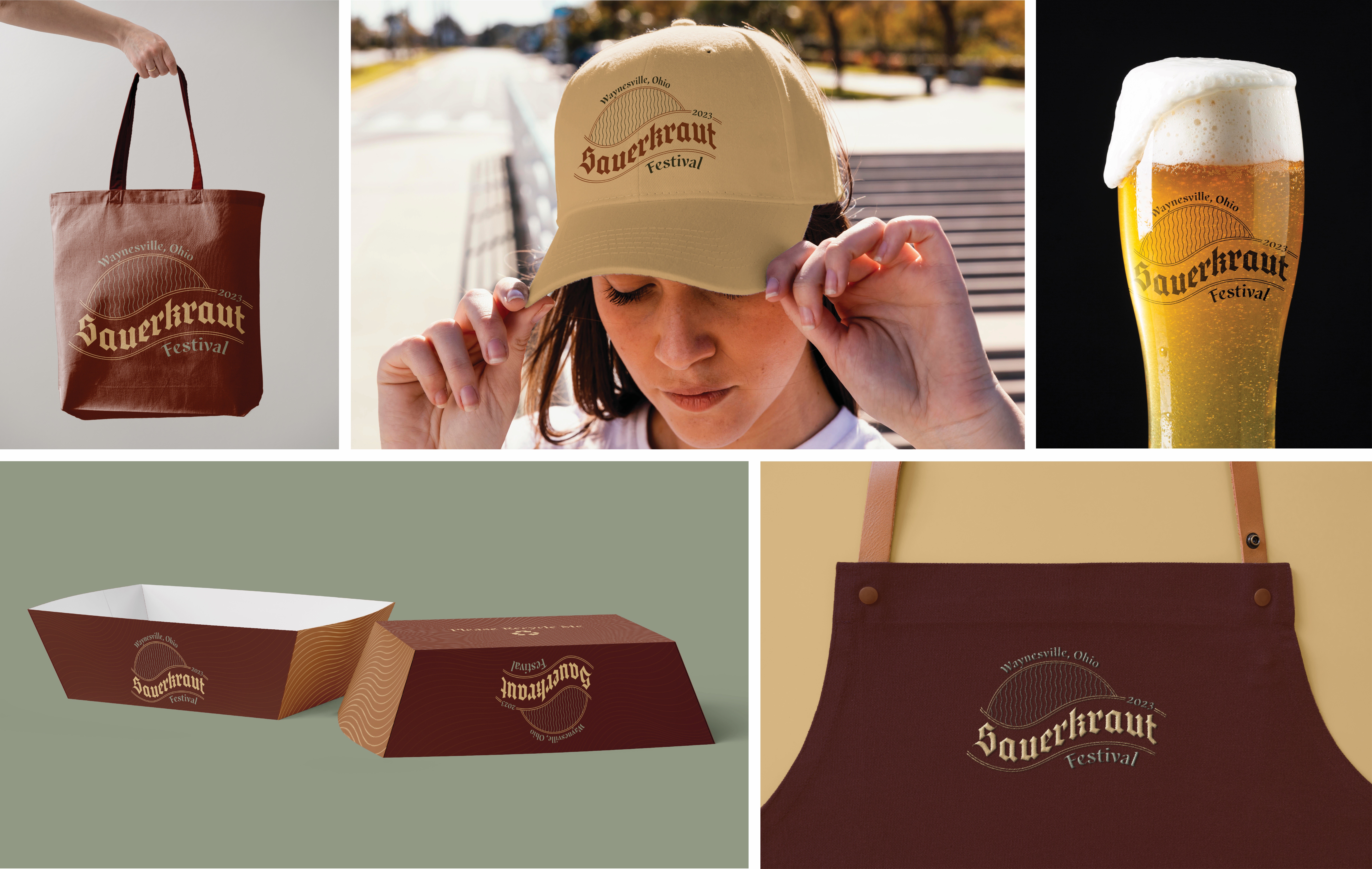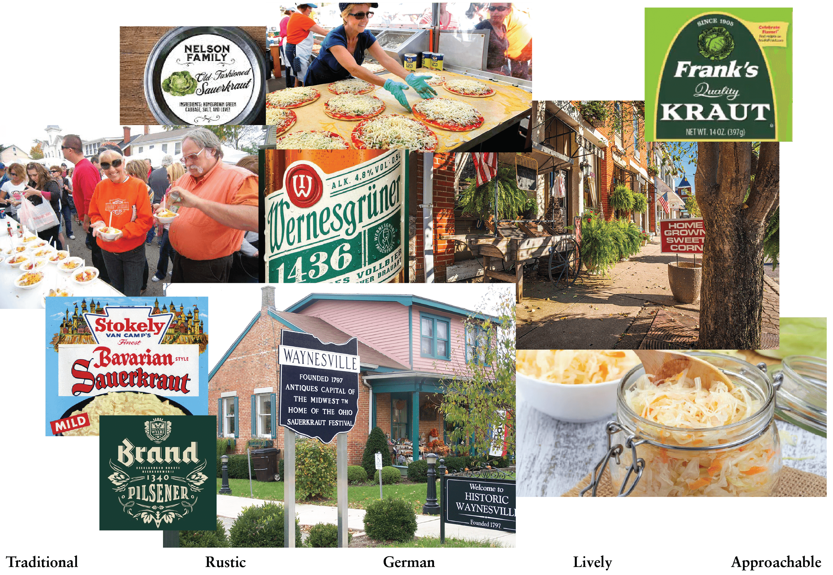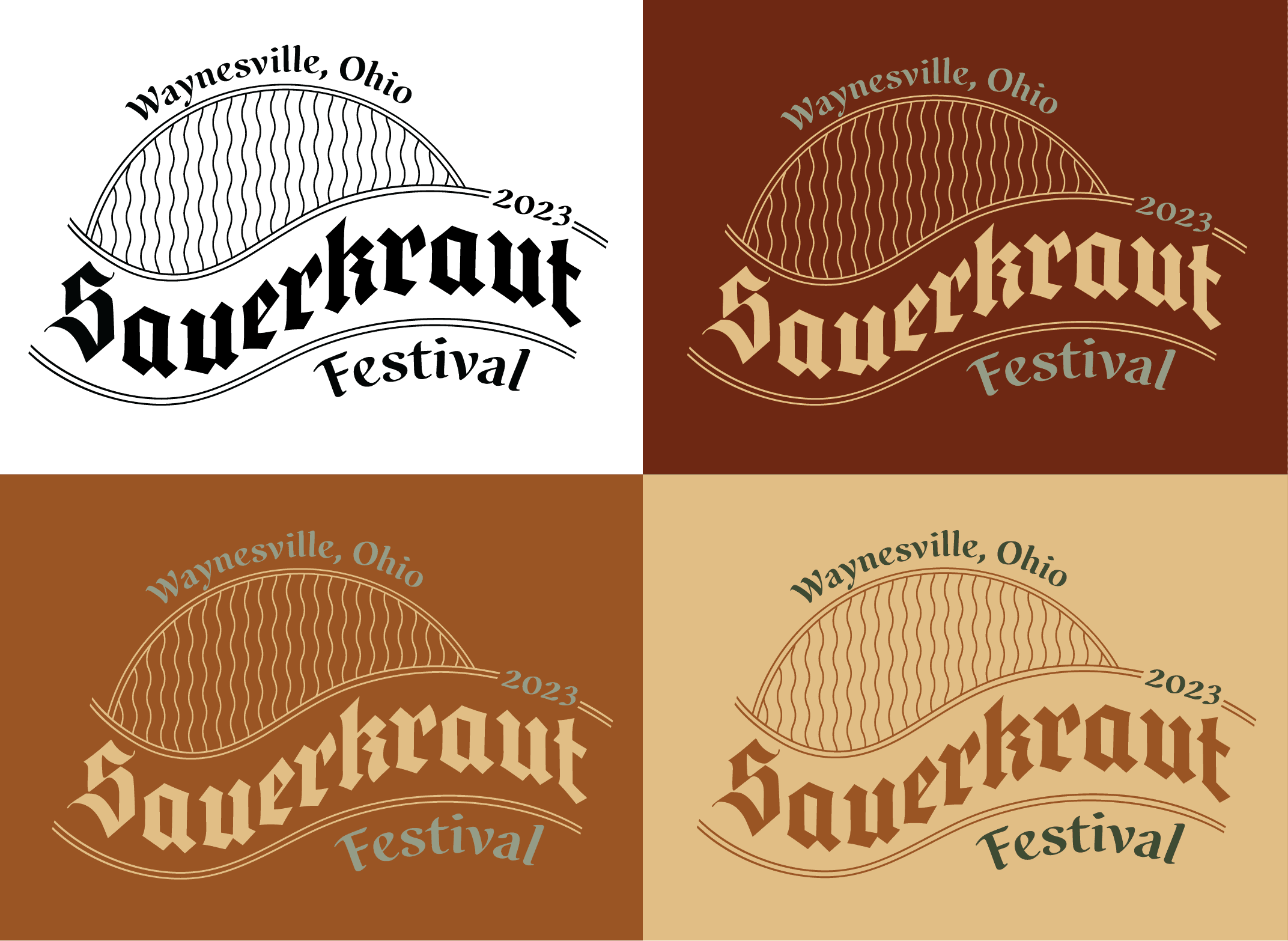The Sauerkraut Festival is an annual festival in Waynesville, Ohio held in October since 1970. It brings together over 300,000 visitors of all ages to taste a variety of sauerkraut-infused foods, support local businesses, and enjoy live entertainment. The new visual identity does blank blank blank for it.